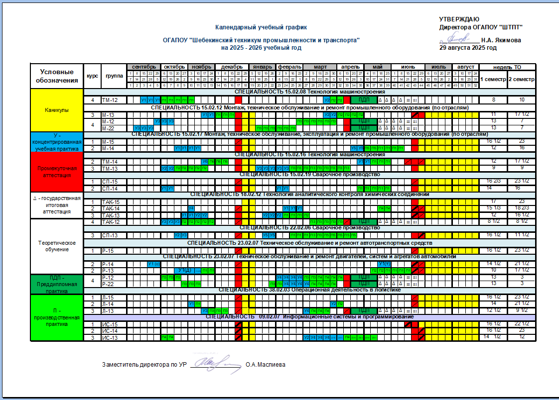 ОЧНАЯ ФОРМА ОБУЧЕНИЯ ГРАФИК УЧЕБНОГО ПРОЦЕССА на 2025-2026 уч. год