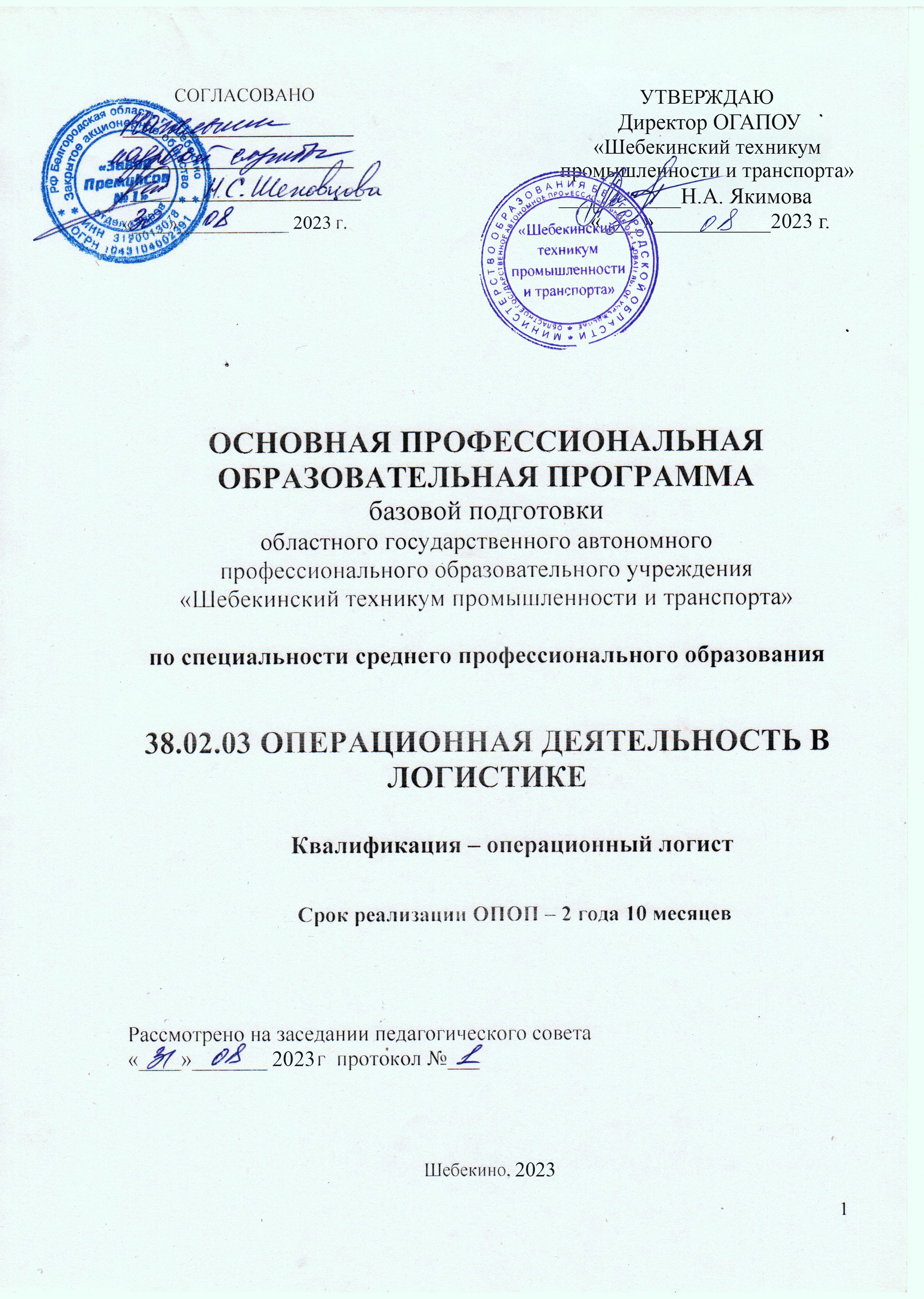 2023 год Основная образовательная программа базовой подготовки по специальности 38.02.03 Операционная деятельность в логистике